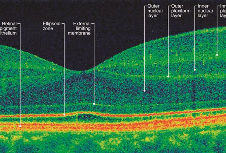 With OCT, your ophthalmologist can see each of the retina’s distinctive layers. This allows your ophthalmologist to map and measure their thickness. These measurements help with diagnosis. They also provide treatment guidance for glaucoma and diseases of the retina. These retinal diseases include age-related macular degeneration (AMD) and diabetic eye disease.
